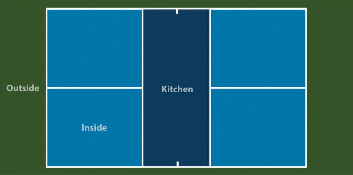 Standard Court: Playing Court: 20’ x 44’ - Whole System: 30’ x 60’