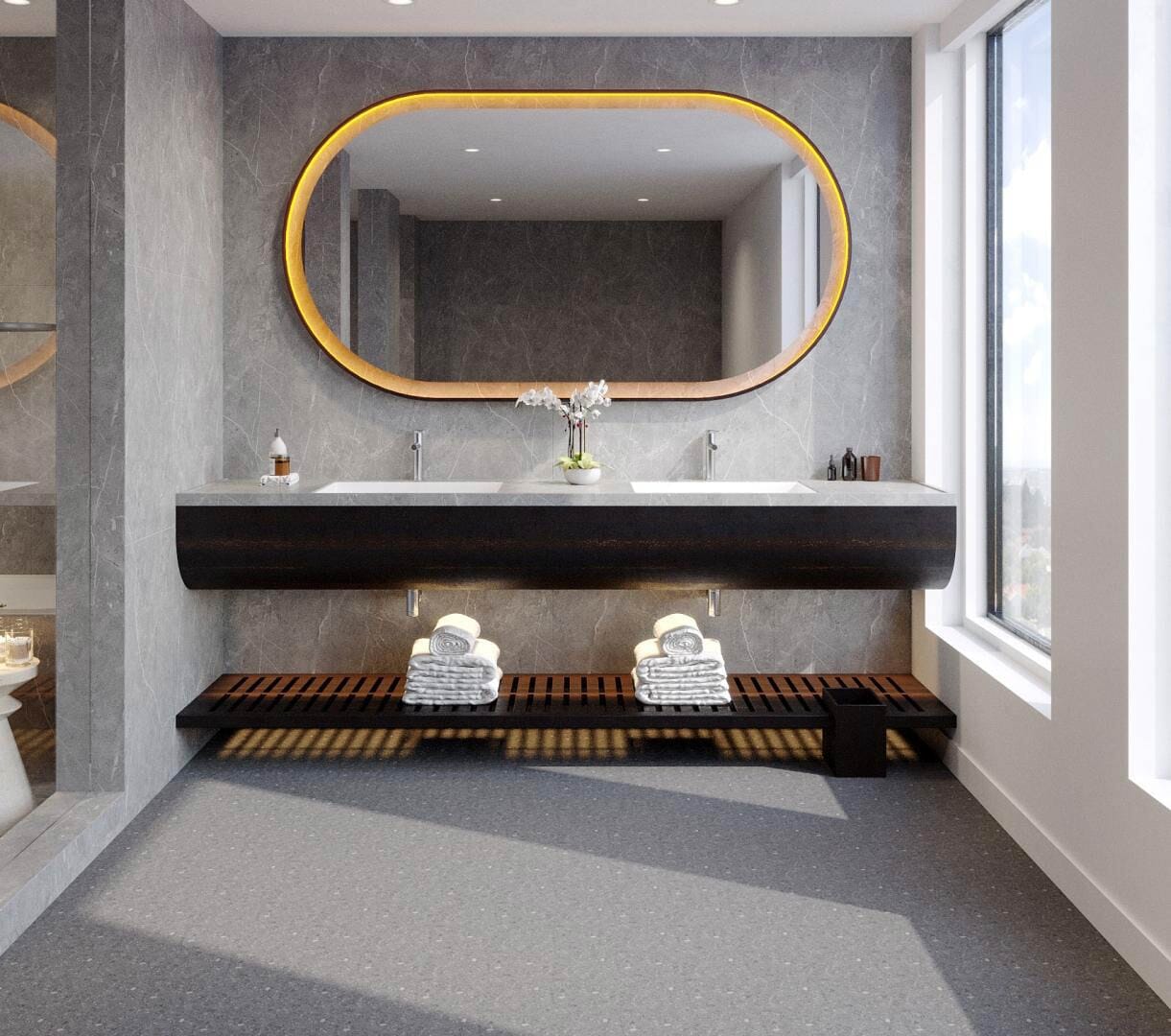 AssurGrip Rx features a superior slip-resistant surface layer fusion bonded to a vulcanised composition rubber base layer, making it the ideal surface for bathrooms, lockerrooms, and other wet areas.