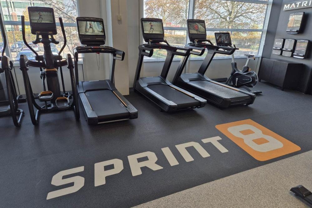 For the main gym, the Vision zone and the Sprint 8 zone, EcoFit rubber flooring was installed in Beech Glass, Gravel Rock and Final Cut respectively – the latter featuring a large Sprint 8 logo.